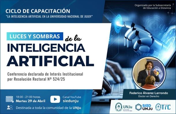 La Subsecretaría de Educación a Distancia de la Universidad Nacional de Jujuy (UNJu) invita a toda la comunidad universitaria a continuar participando del Ciclo de Capacitación en Inteligencia Artificial, una propuesta que promueve la reflexión crítica sobre el impacto de estas tecnologías en la educación, la investigación y la gestión universitaria.